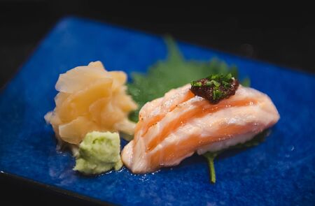 Sashimi on the plate. Japanese cuisine. Selective focus.