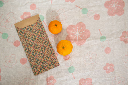 Chinese New Year or lunar new year decoration. Red envelopes with sakura flowers on white background.