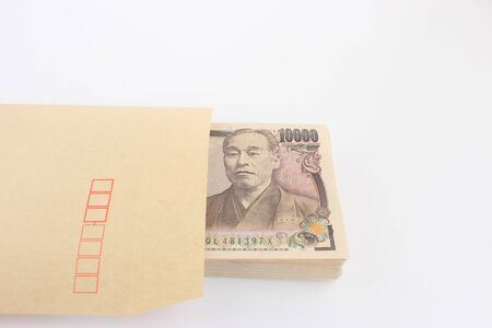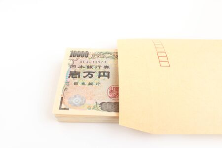 Japanese currency 100,000 yen with envelope on the black background closeup