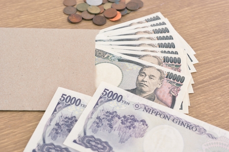 Japanese money scattered on the table