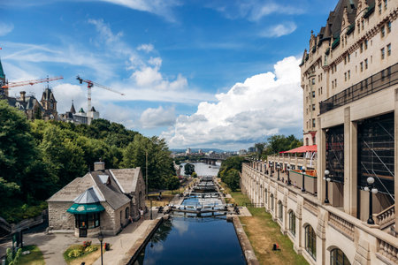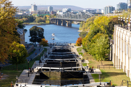 Ottawa, Canada - October 6, 2025: Historic Rideau Canal locks by Ottawa River