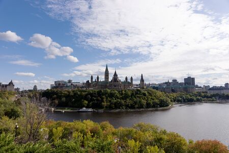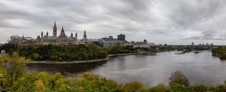 Ottawa, Ontario, Canada - September 30, 2018: Panoramic view of Downtown Ottawa and the Parliament of Canada.