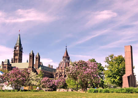 Lilac on the background of Parliament in Ottawa, Canada, May 18, 2008