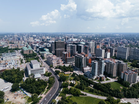 aerial city view of the skyline of downtown Ottawa, including Parliament buildings Ottawa, Ontario Canada.