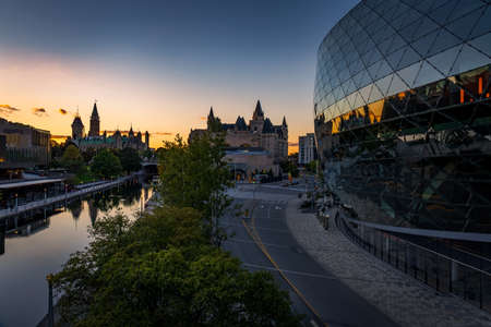 Cityscape skyline of Canada with Parliament hill in downtown Ottawa at sunset