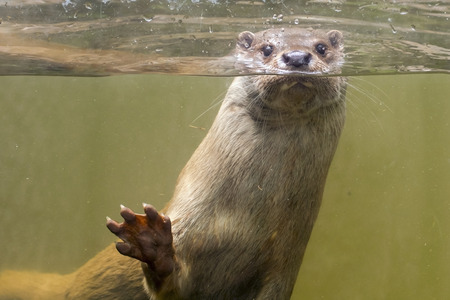 Otter swimming in the water. Portrait of a wild animal.