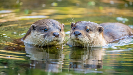 otters swimming and playing peacefully at the zoo