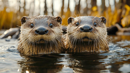 Playful river otters frolic in a lush, restored wetland, a testament to successful ecological restoration Vibrant aquatic vegetation thrives, showcasing improved water quality and biodiversity This vibrant nature scene exemplifies wildlife conservation efforts, highlighting the beauty and importance of a healthy ecosystem AI Generative