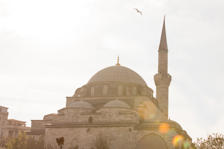 Suleymaniye Mosque and Seagull. Istanbul background photo. Landmarks of Istanbul. Ramadan, oil lamp and iftar background photo. Mosques in Istanbul.