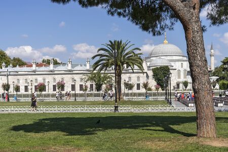 Istanbul / Turkey Tourists sightseeing at Topkapi palace. It was one of the largest palaces of its era, and for 400 years, the political center of the Ottoman Empire.