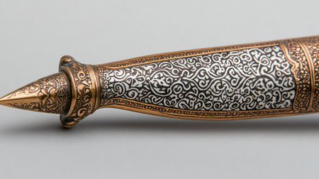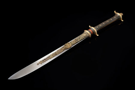 Explore the beauty of this ornate sword featuring intricate designs and a stunning dark background, highlighting craftsmanship and cultural significance.