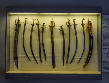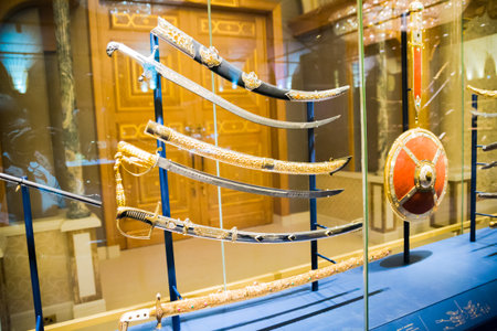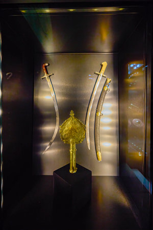 ISTANBUL, TURKEY - SEPTEMBER 21, 2019: Ancient Turkish weapons in the Museum. Sword