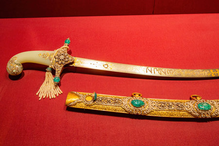 Antique Ottoman Sword from weapons collection in Istanbul Topkapi Palace. turkey - Sep 2022. High quality photo
