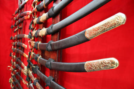 daggers knives saber swords lie on the surface in a private collection