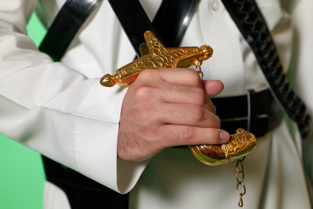 Traditional Saudi out-feet on chromakey. Arabian long saber - saif.
