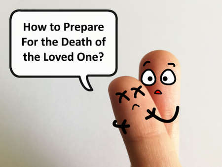 Two fingers decorated as two person. One of them is dead. Another ons is asking how to prepare for the death of the loved one.