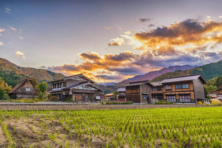 Shirakawago village Gifu Japan, Sunrise at Shirakawa village in autumn season