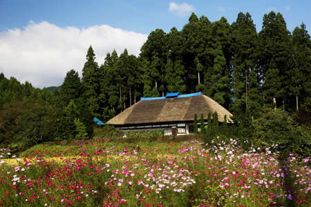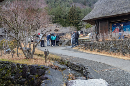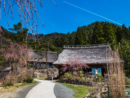 Yamanashi, Japan - April 20, 2017 : Saiko Iyashino-Sato Nenba ancient japanese village is a reconstructed Japanese village where visitors can explore In each individual building, enjoy traditional craft making activities.
