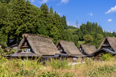Historic Village of Ogimachi in Shirakawa-go, UNESCO World Heritage Site, a small, traditional village showcasing a building style known as gassho-zukuri. Japan.