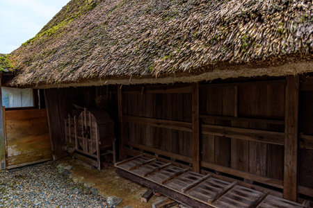 Traditional thatched roof houses of Miyama village in Kyoto Prefecture in Japan, made using kayabuki grass roofing technique, a UNESCO Intangible Cultural Heritage on 17 February 2024