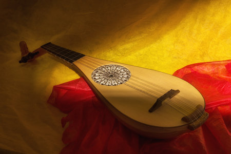 Musical still life in the Renaissance style with renaissance guitar