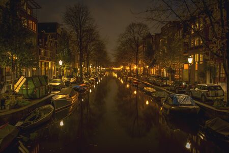 Amsterdam canals at night, Holland, Holland, Netherlands.