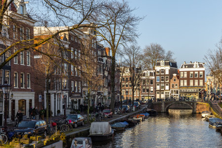 Amsterdam, Netherlands, February 7, 2016: View on the Ruguliers canal in the old center of Amsterdam in The Netherlands