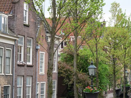 The canals and waterways in the city of Delft in the Netherlands on a sunny day
