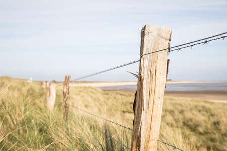 Landscape of North German island Sylt Coastline with fence and dune grass
