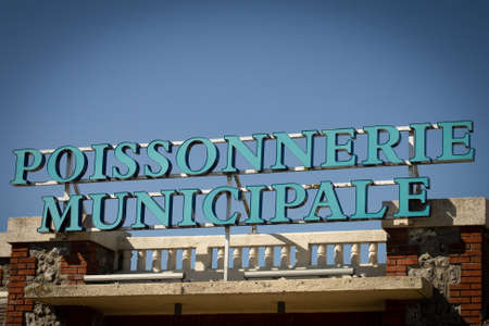 panel of a building or it is written on it in French municipal fish market