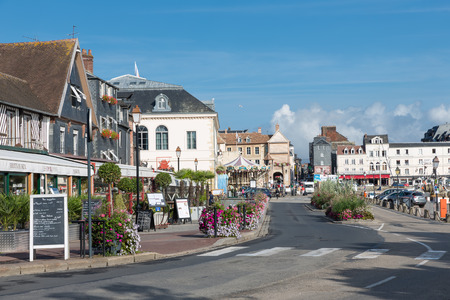 TROUVILLE, FRANCE - September 06, 2017: Street view with colorful buildings in Trouville, Famous french town in Normandy