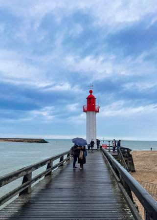 View of the Lighthouse of the Grande Jetée (large pier) at the exit of the port of Sables d Olonnes, France