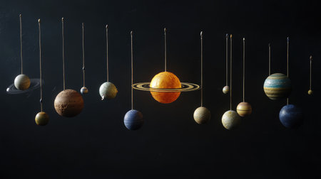 Visual representation of a solar system model featuring floating planets. This artistic depiction illustrates space concepts, enhancing educational and creative projects.