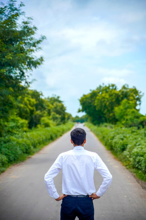 Asphalt road along the pasture in countryside of Thailand, retro color style