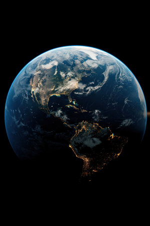 View of Earth from Space with City Lights in the Background A Stunning Overview of Urban Civilization at Night