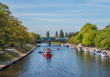 York, Yorkshire, United Kingdom - SEP 3, 2019: York City with River Ouse in York ,United Kingdom.