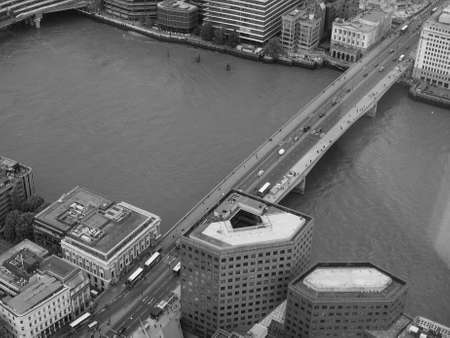 LONDON, UK - JUNE 10, 2015: Panoramic view of Thames River in black and white