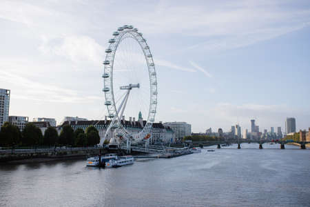 London, England - July 26, 2014 - Sunset in London over the Thames river in Westminster with the London eye and Big ben in the background. London is the capital city of England and a popular tourist destination.