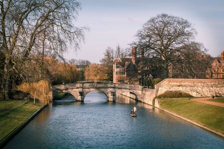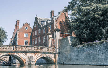 Cambridge, UK - July 16, 2021: River Cam and kitchen bridge of st Johns college, Cambridge university