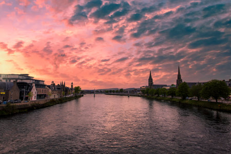 Sunset over the River Ness in Inverness, Scottish Highlands, UK