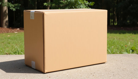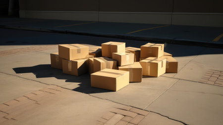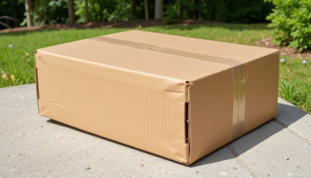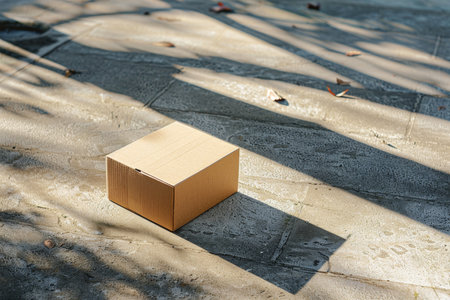 Closed cardboard box on concrete surface in sunlight, simplicity. generated by ai
