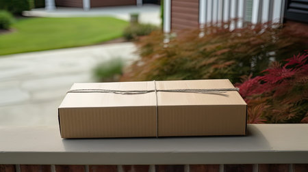 Package delivery action at home doorstep residential area photo outdoor close-up convenience
