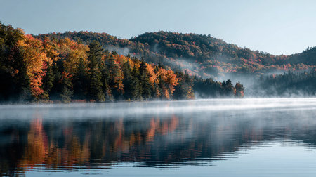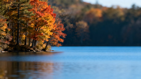 Autumn foliage reflected in the calm waters of the lake, nature background