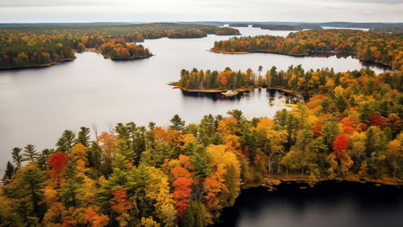 Generative AI : Aerial view of Lake Uhtjarv with woody shores in autumn time in Urvaste Estonia