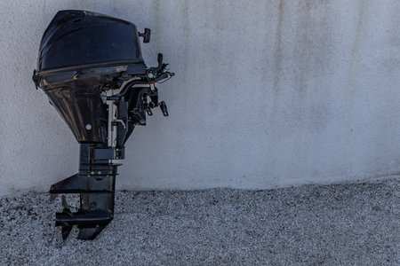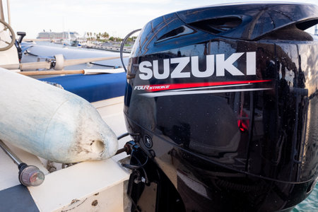 Valencia, Spain - November 2, 2019: Outboard motor of the Suzuki brand.