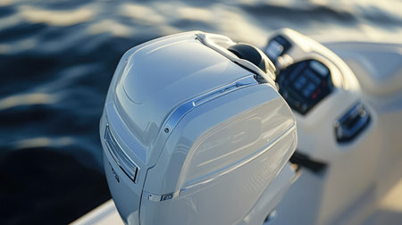 Sleek outboard engine with digital controls and wiring connected to an electronic dash
