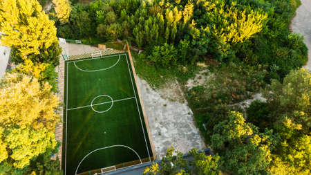 Generative AI : Aerial view of a football field in the wood in Pietrapertosa Potenza Basilicata Italy