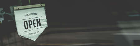 Open sign in a business coffee shop ready to service after close covid-19 situation