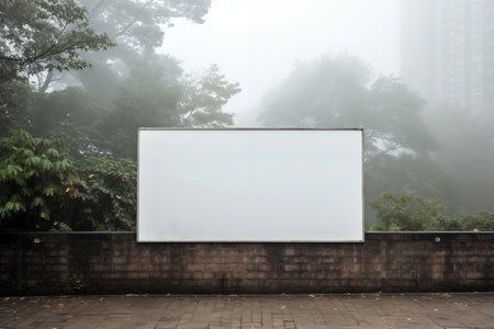 Blank billboard in the foggy forest. Mock up