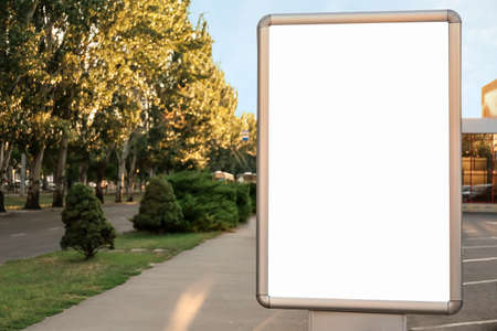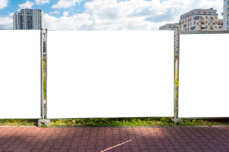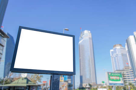 Blank white advertising billboard in the city
